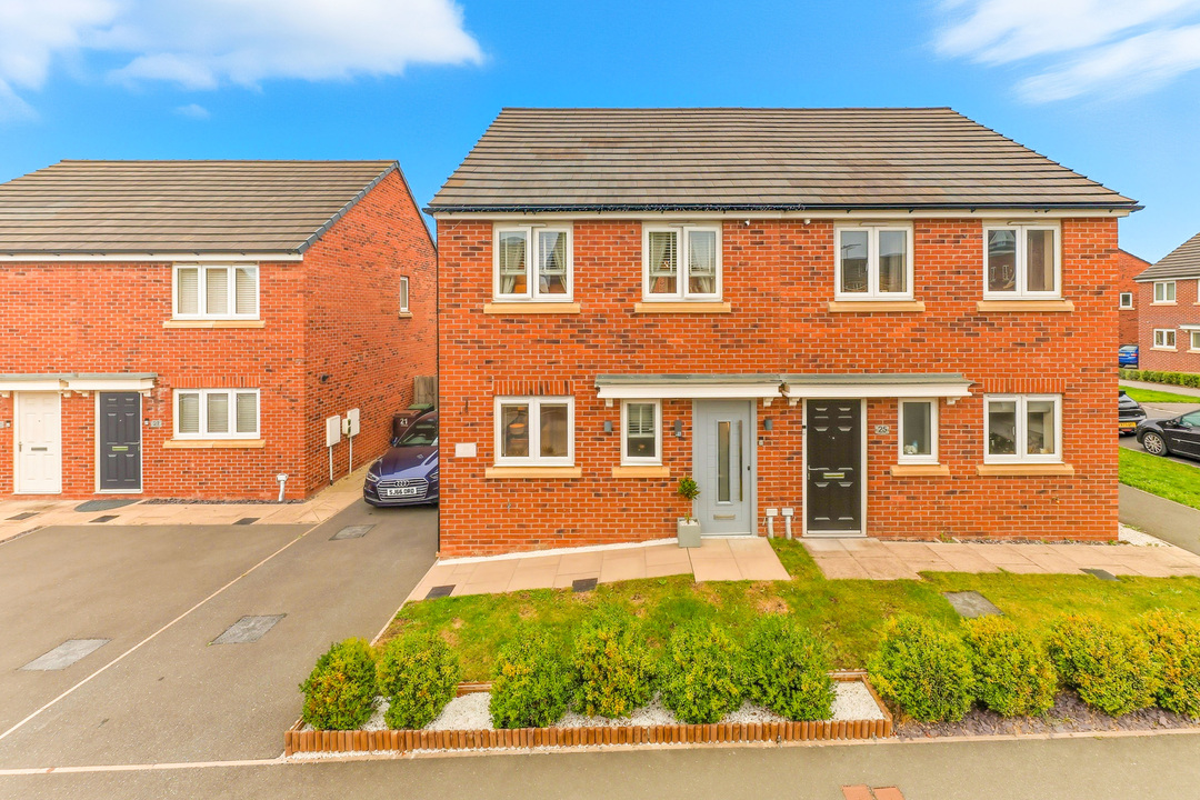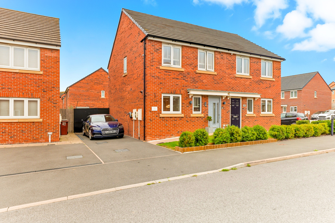 A low-maintenance front garden with paving leading up to a brand-new front door, giving the home a great first impression. There is off-street parking for two vehicles and a Pod Point electric car charger installed to the side of the house.