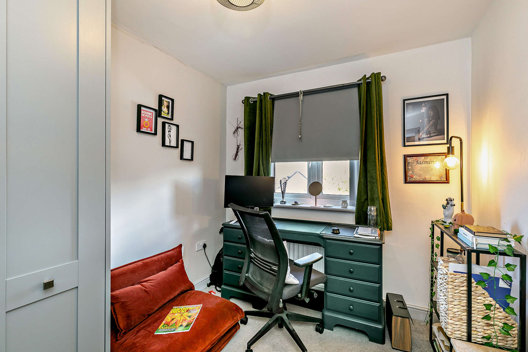 3.11 m x 2.63 mA good sized room which offers plenty of space, should you work from home. Alternatively, the room is also large enough to accommodate a single, or ¾ bed and associated furniture, if preferred. Central Heated radiator and Double Glazed patio doors front aspect.