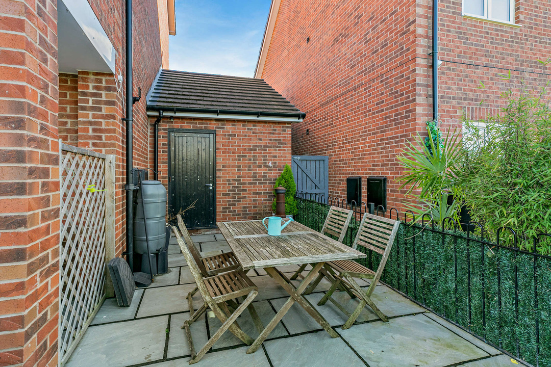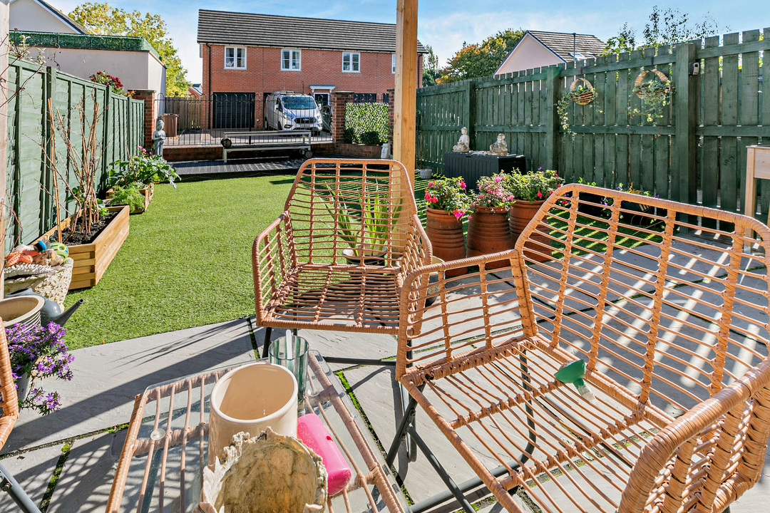 A large and very well-kept front garden, which consists of a generous artificial lawn, surrounded by plenty of floral decoration. Decked area at the bottom and a stunning "Indian stone patio area " This is an deal spot for morning coffee. The driveway can accommodate up to two vehicles with off-street parking and there is an integral garage which offers plenty of storage capacity, including space for one more vehicle, if needed. Access to the rear of the property can be obtained through the garage.Note: the garage has been fitted with a premium electronic door (with remote access)