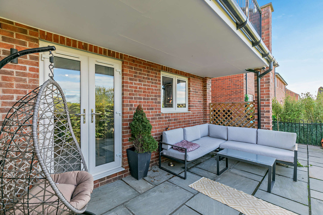 A truly wonderful space, which could be enjoyed all year round, with some exterior heating. The Indian patio area is enclosed on all sides, it catches the sun well and offers privacy at the same time. The patio area looks across the River Calder and enjoys nothing but trees and rural landscapes for as far as the eye can see. A wonderful space for a family get together.