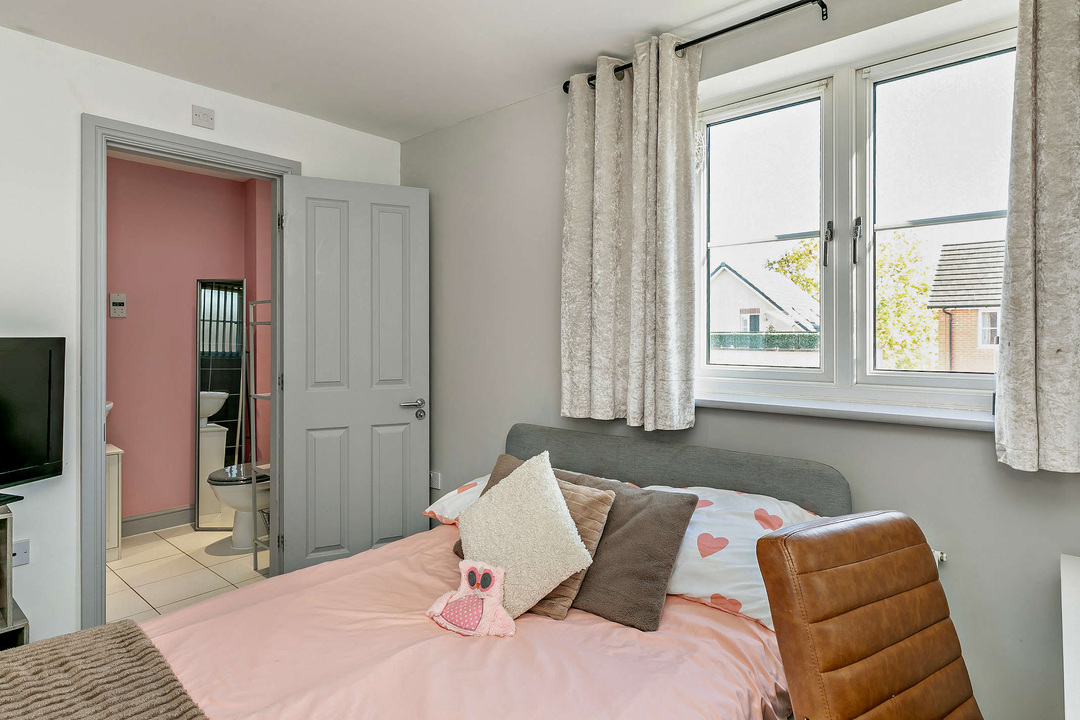3.28 m x 3.18 mA spacious room which can comfortably accommodate a King-size bed, oversized triple wardrobes and some additional furniture, as required. Central Heated radiator and Double Glazed windows to the front elevation.
