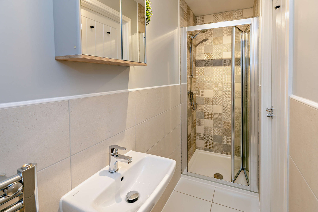 Features premium quality tiles to the walls and floor. Features include: a W/C and a wash basin. Central Heated radiator, and an extractor fan with an isolation switch. Some of space for added storage units if preferred.
