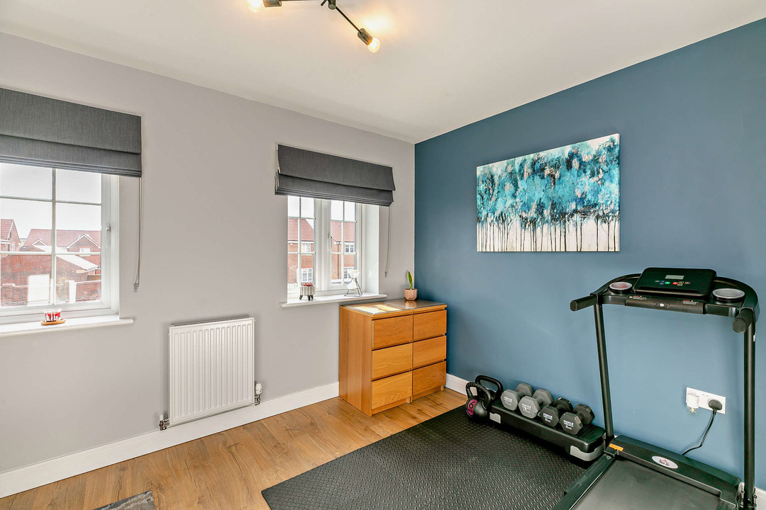 3.99 m x 2.56 mA spacious bedroom which can comfortably accommodate a double bed and additional storage furniture as required. Ideal as a bedroom, nursery, or home office/gym. Central Heated radiator and Double Glazed windows to the front elevation. Note: Built-in storage closet.