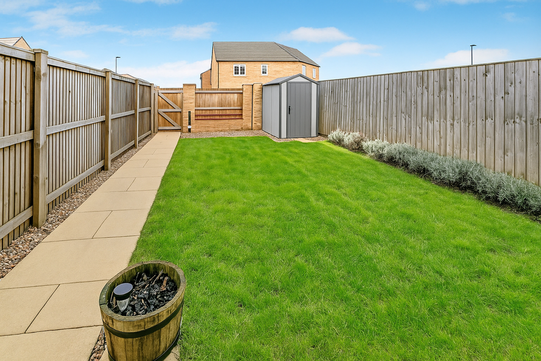 A beautifully presented rear garden which consists of an easy to maintain grass lawn, a small patio area and a gravelled section. There is also space to accommodate a medium sized shed. Two off-street ‘side-by-side’ parking spaces